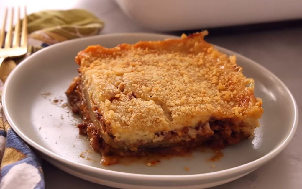 Allow the Moussaka to cool for at least 15 minutes before slicing. This rest period helps the layers set so you can serve clean, beautiful squares.
