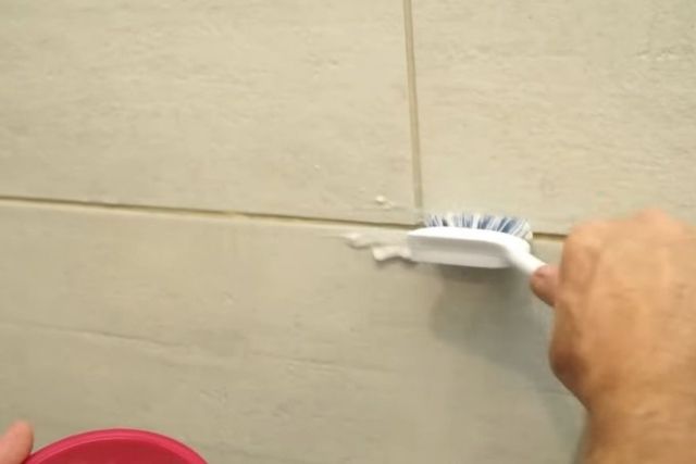 With a soft hand brush or sponge, loosen dirt in a circular motion, moving across the wall from one side to the other, then moving down one line of tile and across. A clear and consistent path means you will not miss or skip areas, but if there is heavy build-up, limescale, or hard water stains, you will need a lot of elbow grease.
