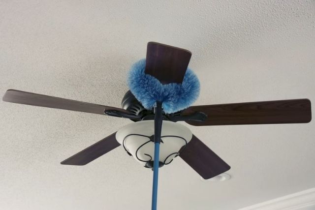 Cleaning a Ceiling Fan with a Duster, No Ladder Needed