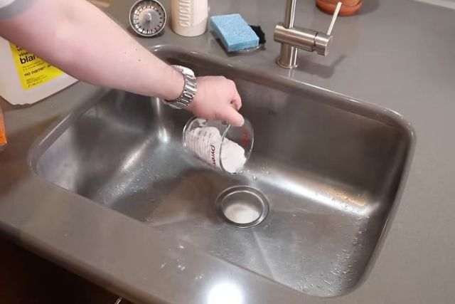 4. Rinse the sink and drain thoroughly with hot water from the tap.