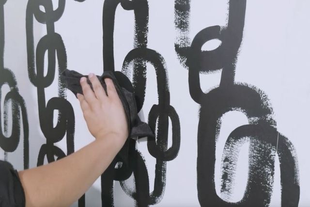 Here are the suggested steps for preparing a cleaning solution and wiping down your washable wallpaper: