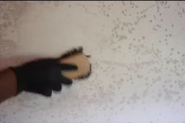 1. Employ the scrubbing brush to gently brush away the mold from the drywall, being cautious not to wet the wall excessively.