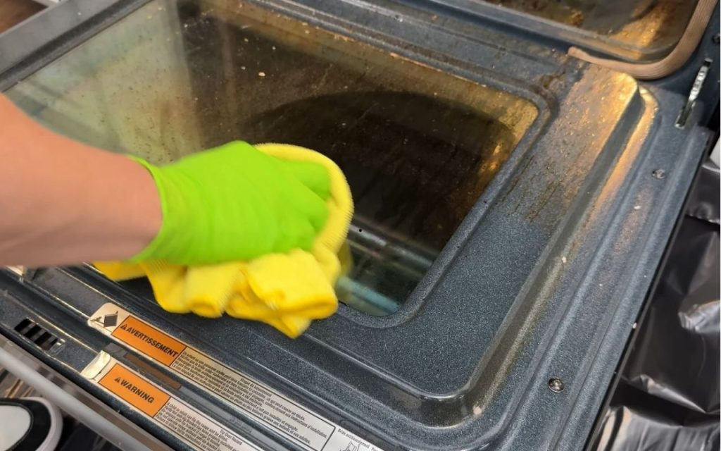 Wipe the entire interior of the oven one last time with a clean, damp towel to remove any remaining chemical residue. Follow up with a dry microfiber towel to polish the surface and ensure no moisture is left behind.